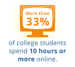 More than 33 percent of college students spend 10 hours or more online. Compare that to 16.6 percent of college students who spend 10 hours or more watching TV each week and 5.5 percent of college students who listen to the radio (Source: Burst).